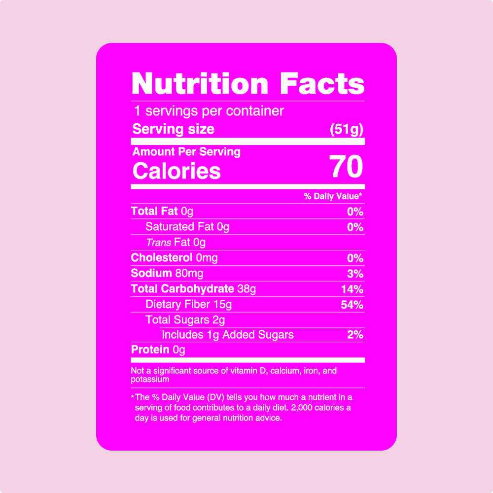 Apple Juice, Tapioca Fiber, Allulose Syrup, Tapioca Flour, Pectin (standardized with sucrose), Citric Acid, Apple Juice Concentrate, Natural Flavors, Fruit and Vegetable Juice (Color), and Citrus Fiber.